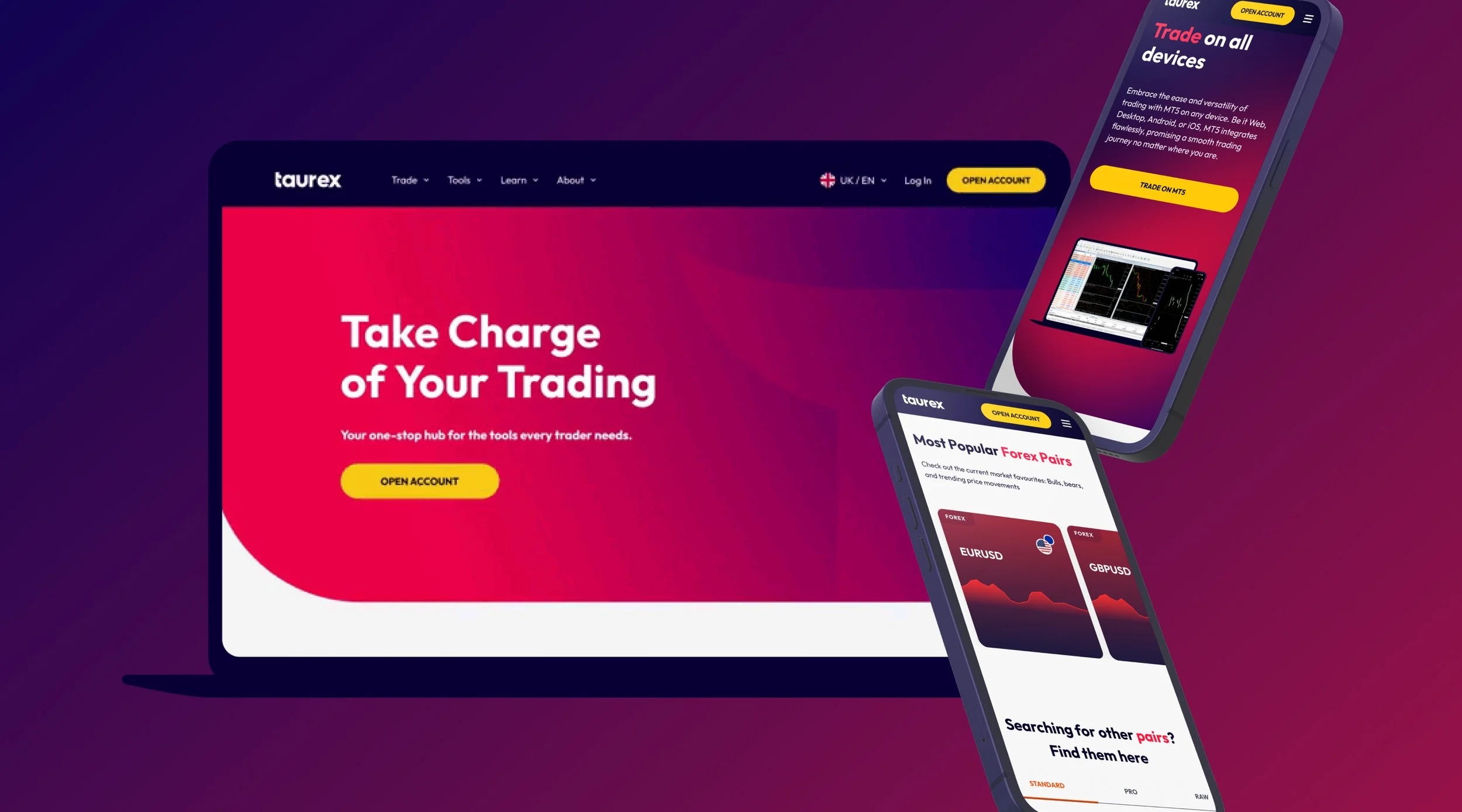 We started by leaning on insights and data from traders across 5 continents and 8 languages, to develop a brand that not only looked the part, but felt safe and established for users to trust their finances with! A vision, mission and brand pillars were established to anchor the beginnings of the brand, before an exhaustive process of finding a suitable name was undertaken to truely make the brand stand out, and stick in peoples mind.